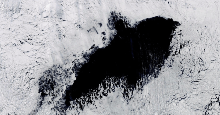 This 32,000 square-mile Antarctic sea ice hole was detected in September 2017 from satellite imagery. Image credit: NASA